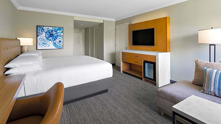 Styled in contemporary furnishings and warm colored decor, this spacious air-conditioned room features an over sized desk and an private bathroom with granite counters.